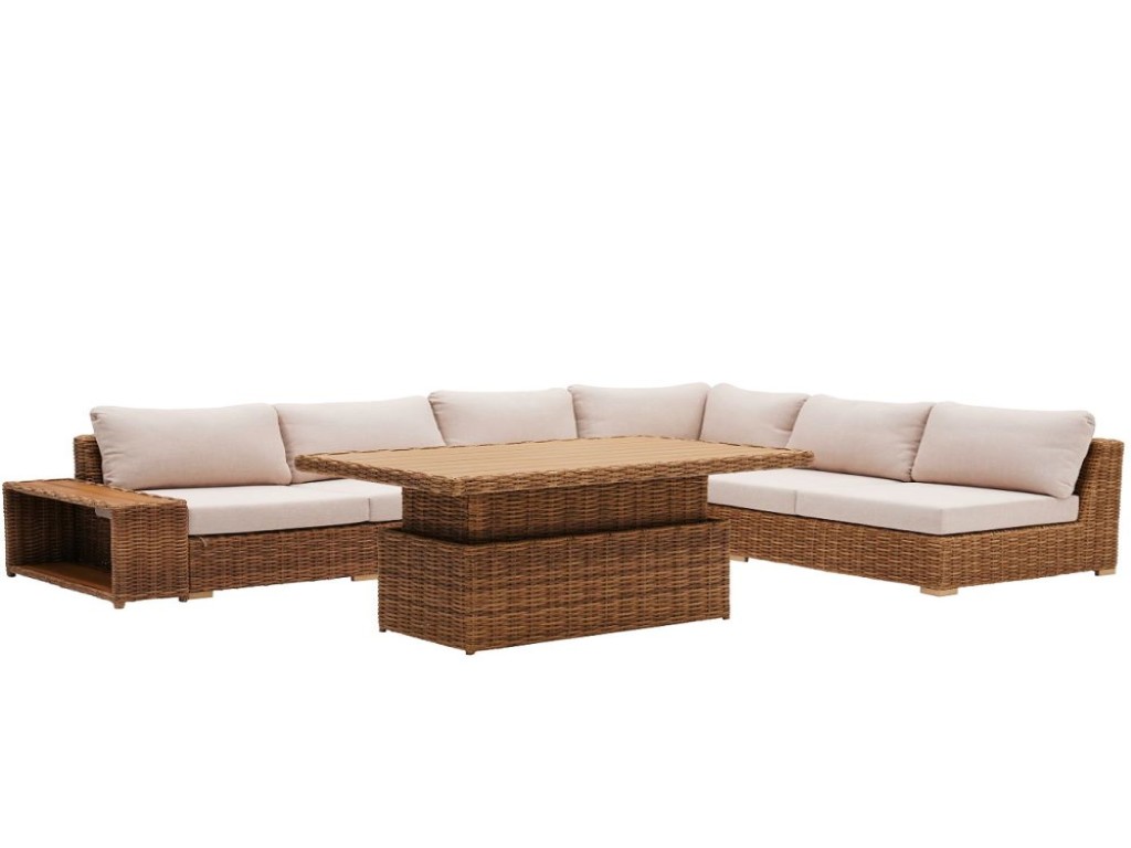Porto set uključuje trosed, ugaonu sofu, klub stočić sa podesivim vrhom i bočni stočić