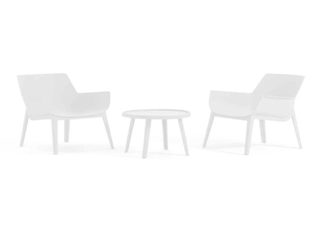 Stolice i stočić izradjeni od polipropilena sa fiberglasom, lagan set, robusne stolice, savršen za spoljašnju upotrebu, otporno na vremenske uslove. Neklizajuće nožice kako na stolicama , tako i na stočiću, otvor za odvod vode u sedištu stolice.