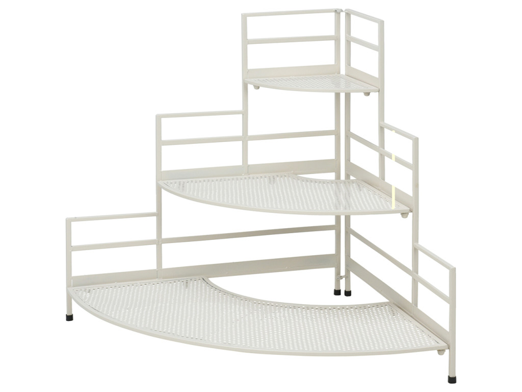 POLICA ZA CVEĆE UGAONA SA 3 POLICE KOOPMAN predstavlja praktično i estetsko rešenje za odlaganje i izlaganje saksija sa cvećem. Zahvaljujući ugaonoj konstrukciji, idealna je za postavljanje u uglove prostorija, balkona ili terasa, čime se prostor koristi na efikasan način.