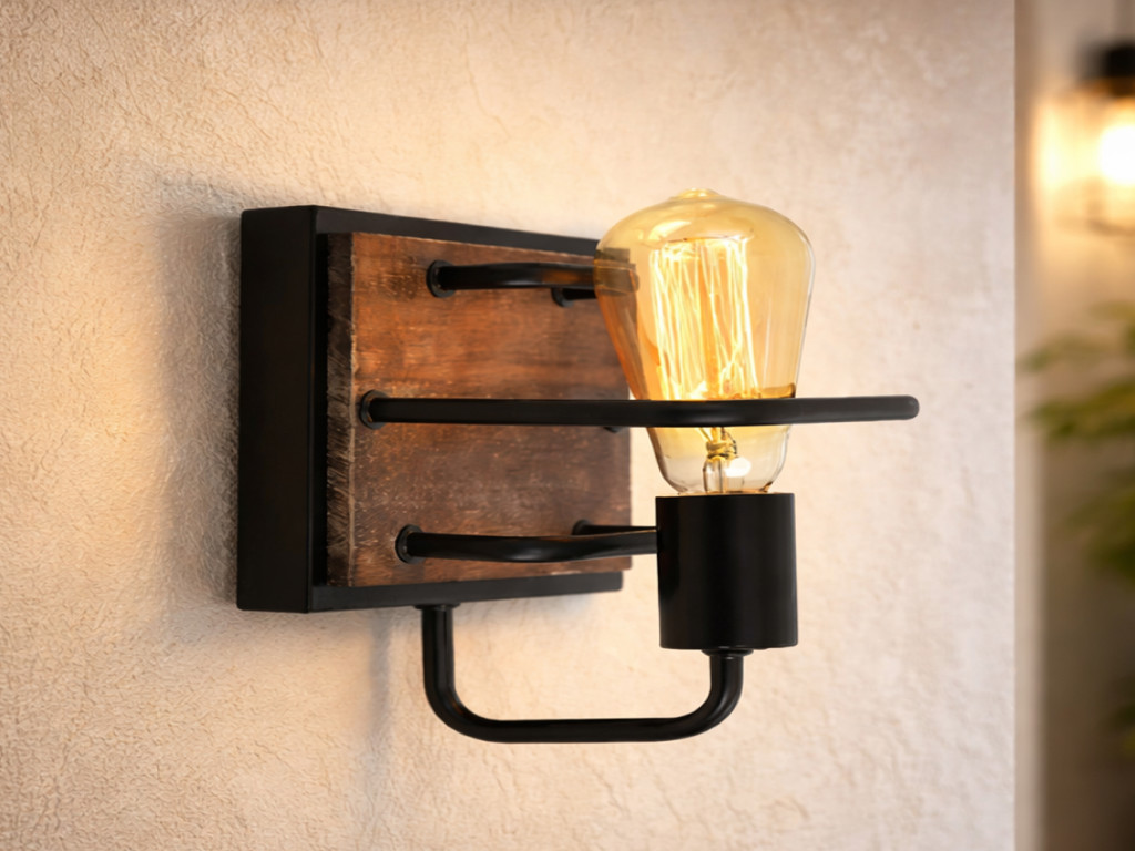 Svetiljka je kvalitetne izrade, od metala i drveta i opremljena jednim sijaličnim grlom tipa E27