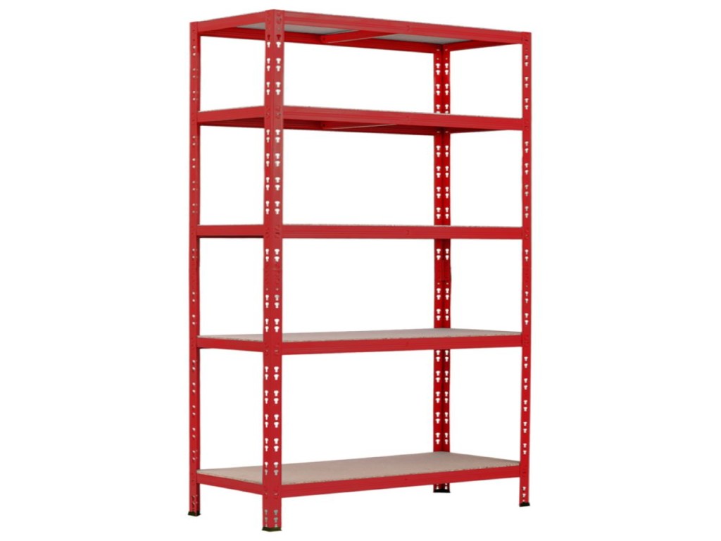 Polica metalna u crvenoj boji sa 5 nivoa MDF polica.
