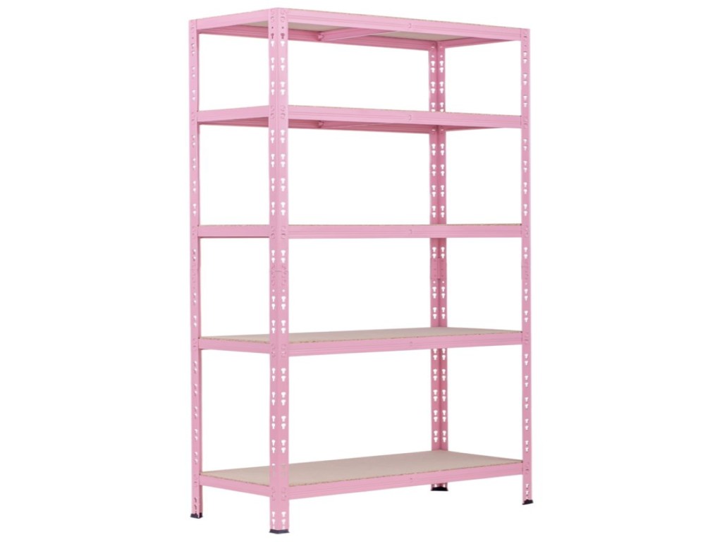 Polica metalna u pink boji sa 5 nivoa MDF polica.