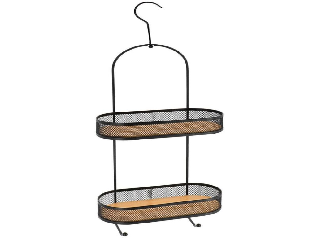 Tendance polica za tuš kabinu sa dva nivoa izrađena od metala u crnoj boji sa bambus elementima predstavlja funkcionalno i moderno rešenje za organizaciju kupatila. Dizajnirana je za upotrebu u tuš prostoru, gde omogućava pregledno odlaganje šampona, gelova za tuširanje, sapuna i drugih potrepština.