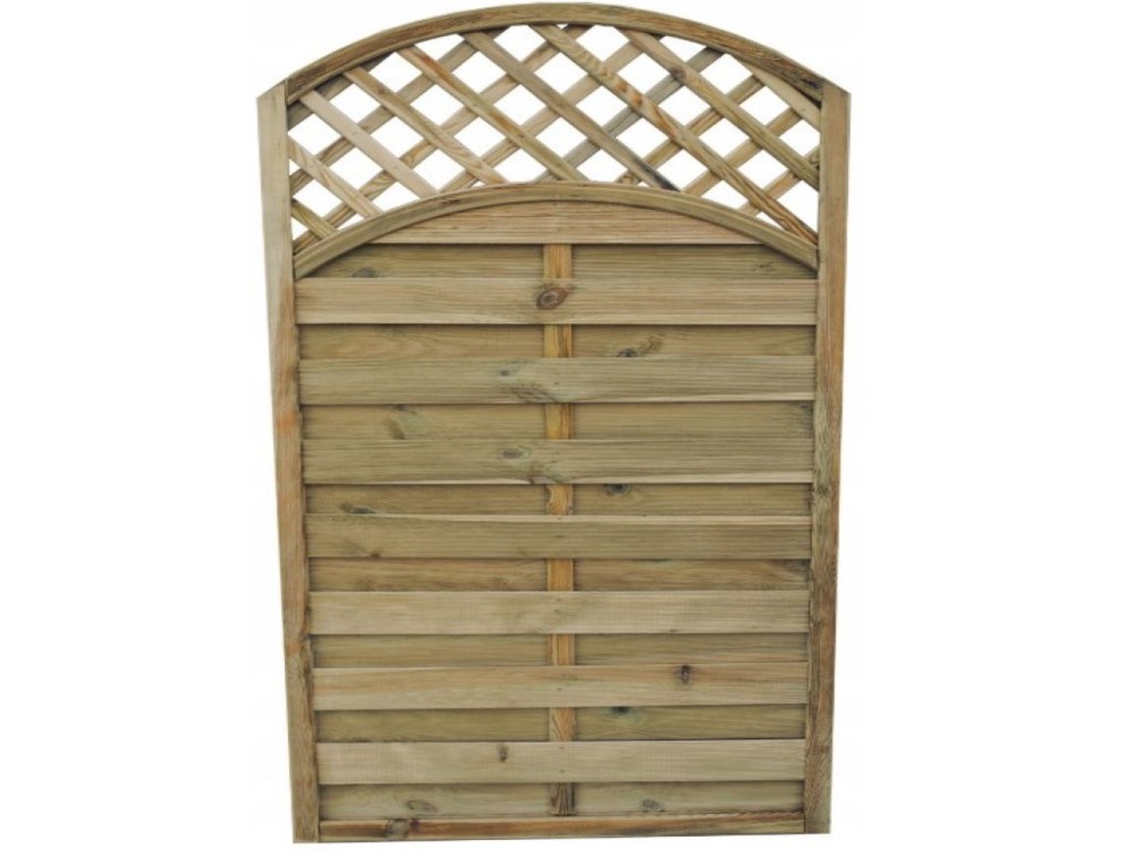 Zaklon lamelni sa ravnim lamelama je jednostavna letvicasta ograda u punom okviru, koju karakteriše suptilna lučna rešetka. To ogradi daje vrlo zanimljiv i elegantan izgled.