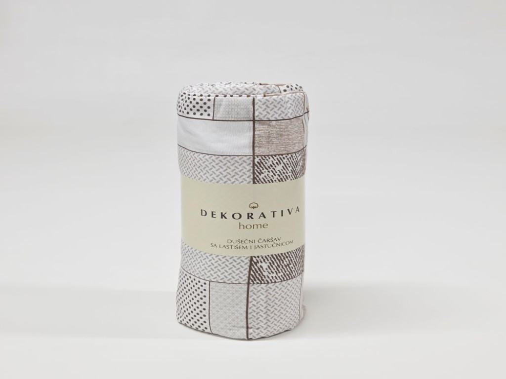 Dušečni čaršav sa lastišem + 2.jastučnice u beloj boji zanimljivog dezena u braon nijansama