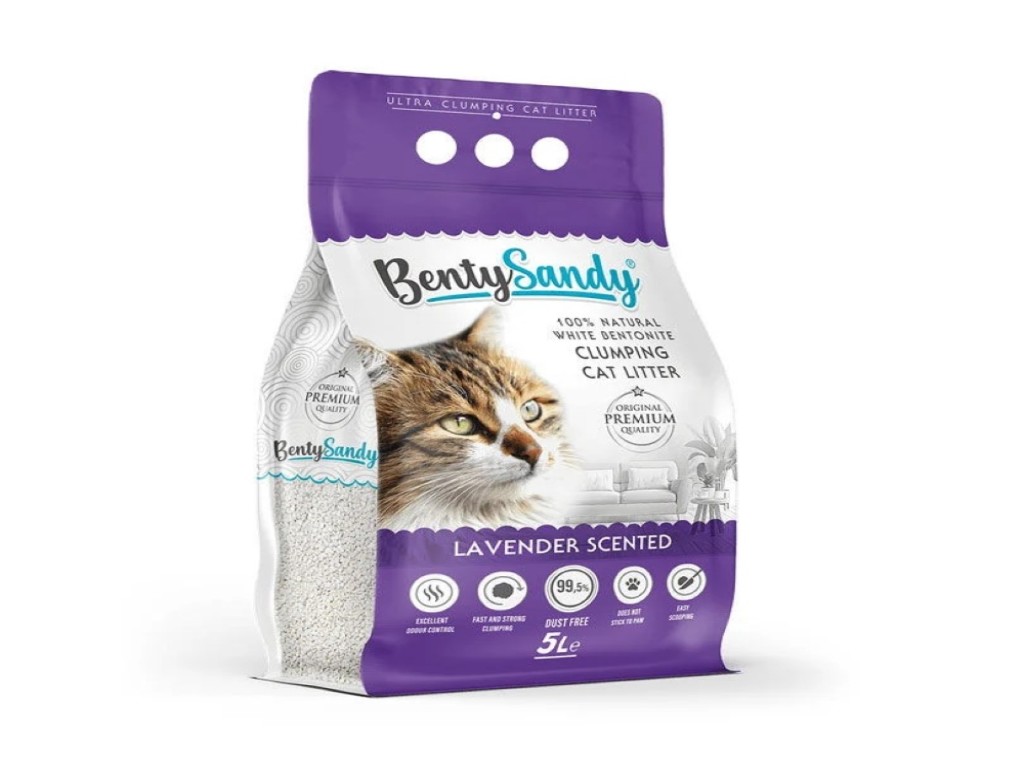 Benty Sandy posip za mačke lavanda 5L izrađen je od prirodnog bentonita visokog kvaliteta, poznatog po izuzetnoj moći upijanja i formiranju čvrstih grudvi. Zahvaljujući tome, čišćenje mačijeg toaleta je brzo i jednostavno, uz minimalno rasipanje materijala.