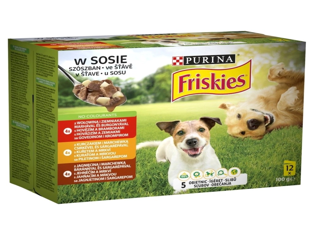 Friskies sos za pse sa govedinom dolazi u praktičnom pakovanju od 12 kesica po 85 g i predstavlja ukusan i hranljiv obrok za svakodnevnu ishranu vašeg ljubimca. Sočni komadi u aromatičnom sosu pružaju odličan ukus i visoku prihvatljivost kod pasa.