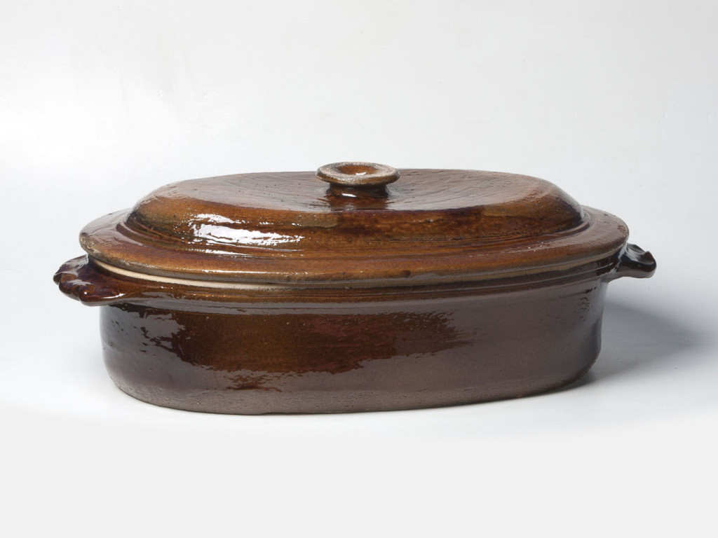 Zemljano glazirano tavče sa poklopcem zapremine 5.5 litara je tradicionalna posuda idealna za pripremu i serviranje manjih porcija jela poput prebranca, đuveča ili sarmi.