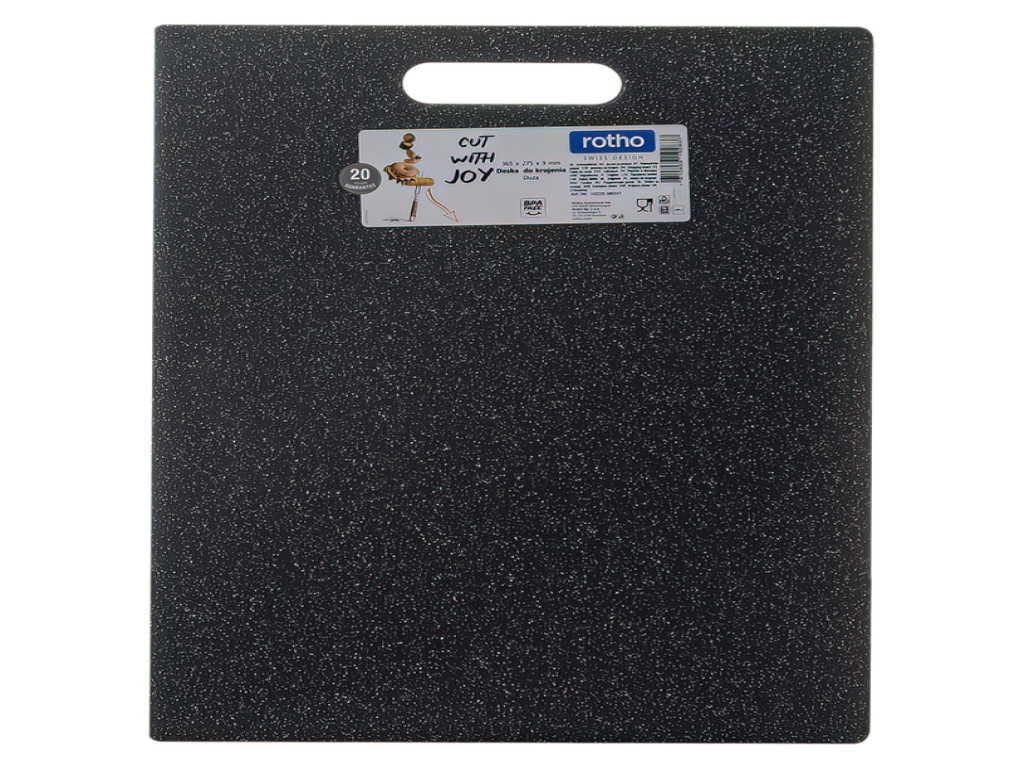 DASKA ZA SEČENJE CRNA GRAFITNA ROTHO predstavlja pouzdanu radnu površinu za pripremu različitih namirnica u domaćinstvu ili profesionalnoj kuhinji. Namenjena je za sečenje povrća, voća, mesa i drugih sastojaka, uz stabilnost i sigurnost tokom rada.