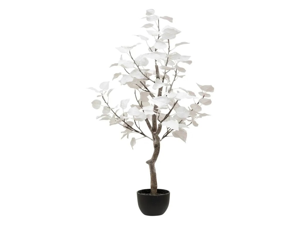 Ukrasno drvo u saksiji sa belim listivima je sjajna dekoracija veštačkog cveća sa vaš dom.