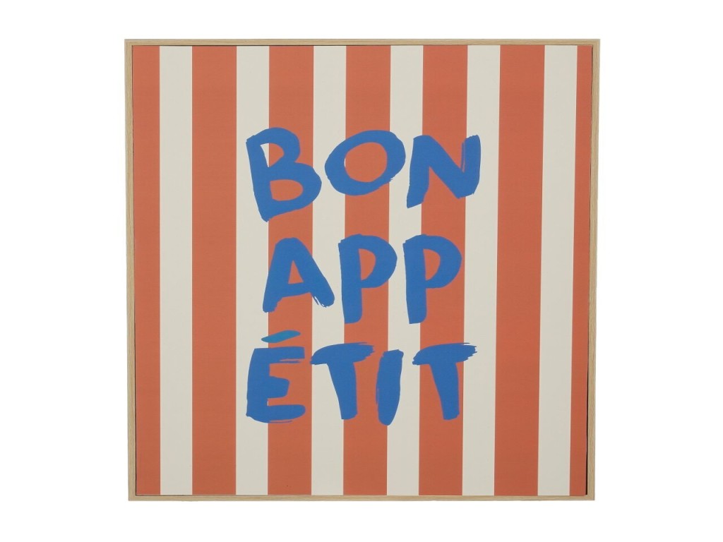 Dekorativna slika sa natpisom „Bon Appetit“ predstavlja odličan izbor za uređenje prostora namenjenog uživanju u obrocima. Ovaj motiv unosi toplinu i prijatnu atmosferu u kuhinju ili trpezariju, podstičući opušteno druženje i uživanje u svakodnevnim trenucima.
