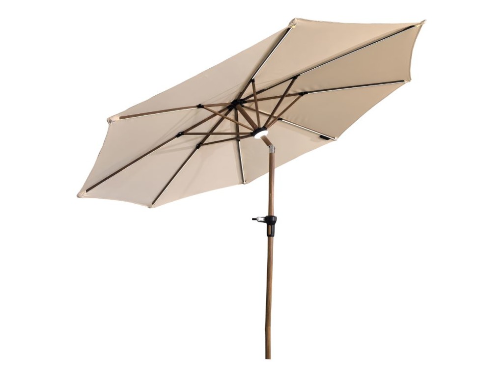 Suncobran u bež boji UV50+ 2.7m/8-38 Market suncobran sa LED trakama i izgledom drveta.