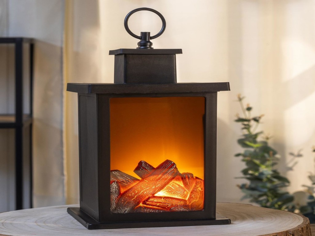 Fenjer dekorativni sa lažnom vatrom je mala ukrasna lanterna sa Led svetlom u vidu vatre u crnoj boji. Ovaj fenjer zbog atmosferskog plamena i cepanica izgleda gotovo kao pravi mali kamin.