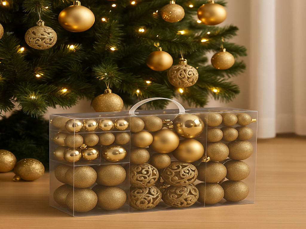 Ovaj set kuglica se sastoji od mat i sjajnih kugli. Budući da božićno drvce ispunjeno kuglicama jedne te iste veličine može delovati monotono, ovaj set se sastoji od najmanje 3 različite veličine božićnih kuglica.