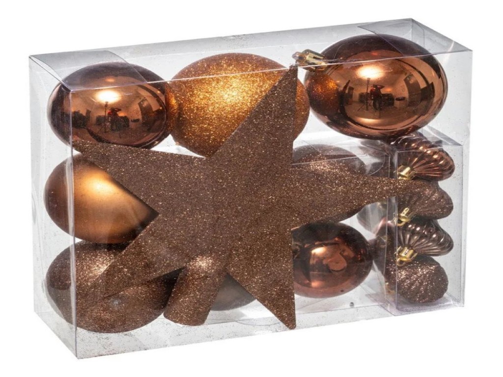 Set novogodišnjih kuglica za sjajnu dekoraciju vaše jelke u boji bronze.