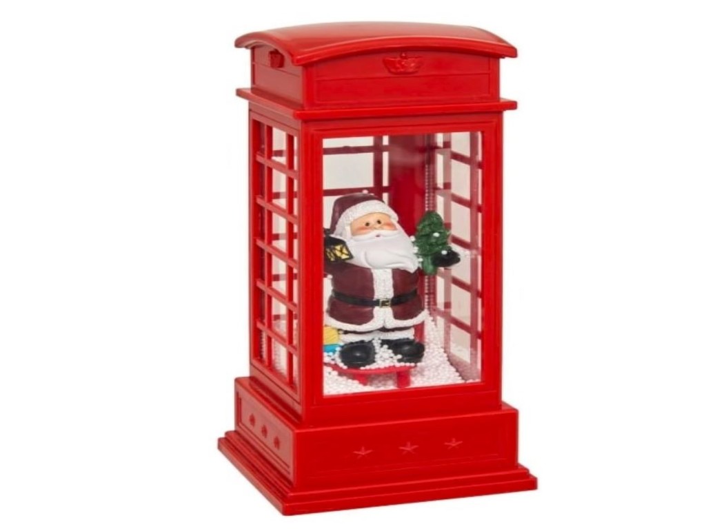 Ukras novogodišnji telefonska govornica. Otkrijte božićnu dekorativnu figuricu telefonske govornice sa LED rasvetom i pokretom, jedinstveni komad za uredjenje vaše praznične atmosfere.