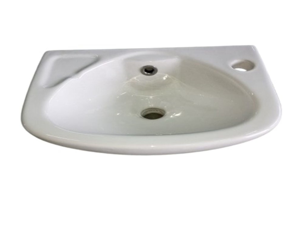 Umivaonik zaobljeni SARA 380x280cm. Klasičan manji lavabo za potrebe malih kupatila, i manjih toaleta u poslovnim prostorima.